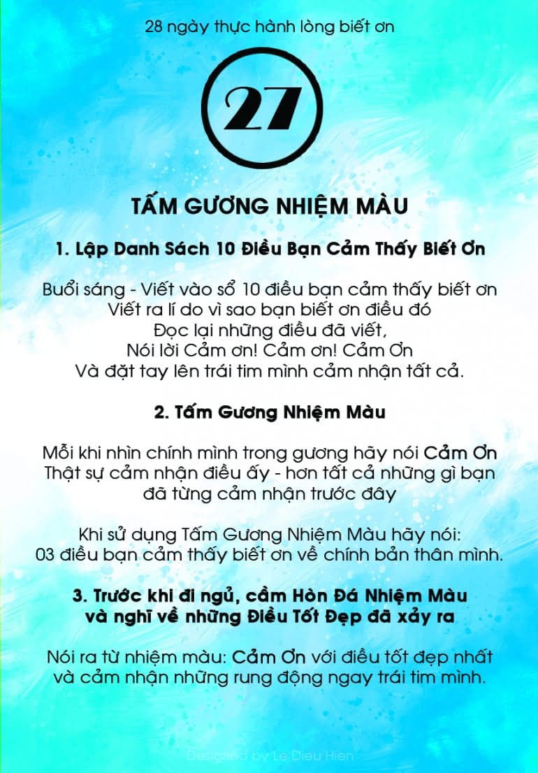 8. Cảm ơn bản thân vì đã có sự rõ ràng hơn trong suy nghĩ và ngôn từ, giúp mình hiểu bản thân hơn nhờ viết liên tục 27 bài tập biết ơn trong thời gian qua. Cảm ơn, cảm ơn, cảm ơn!